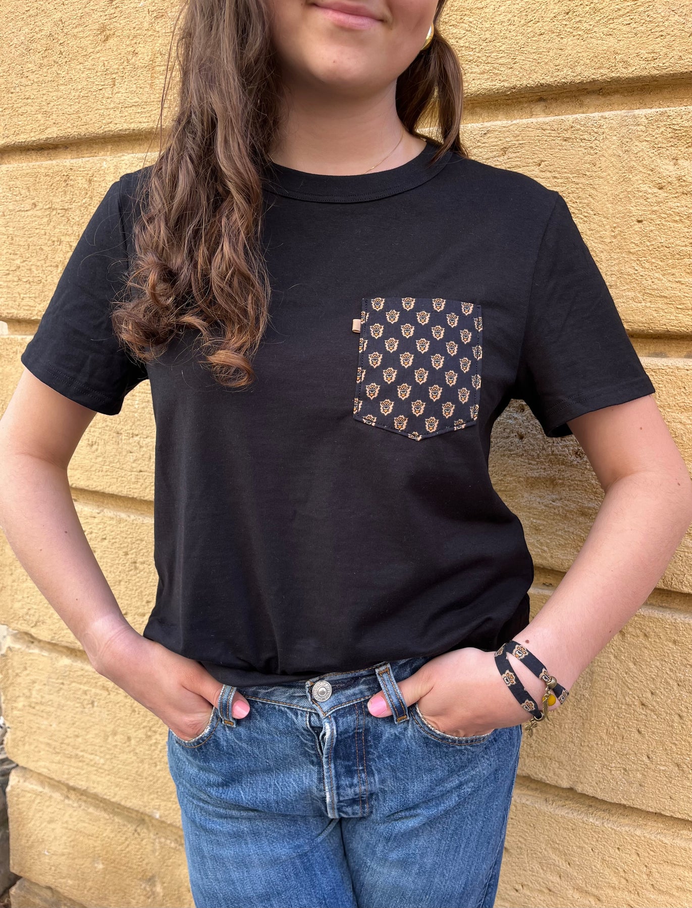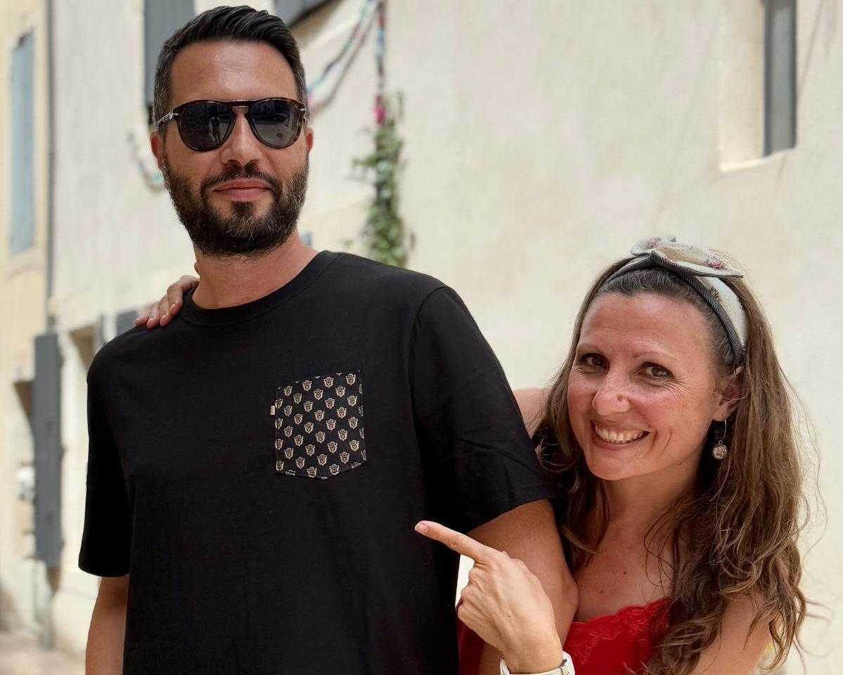 T-shirt fabriqué en France poche poitrine en tissu provençal. Coton bio. T-shirt origine France garantie.