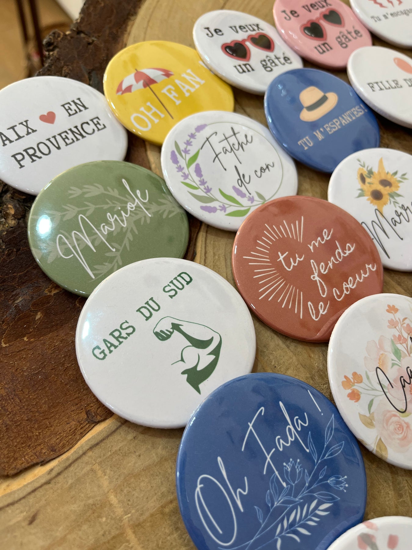 Badge rond avec épingle, à accrocher à votre pull, votre veste, votre sac, votre chapeau, votre écharpe…