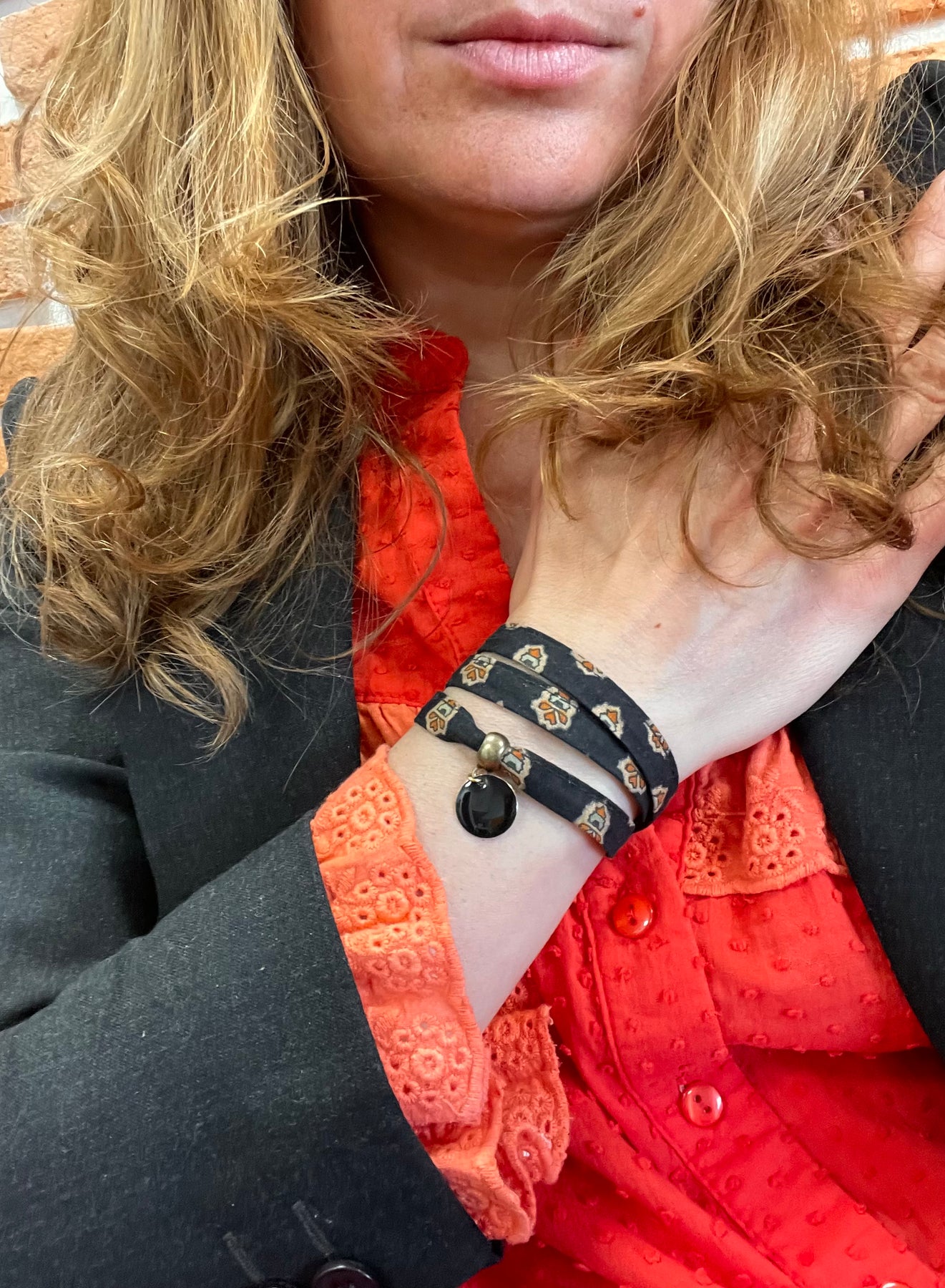 Bracelet 3 tours tissu provençal noir made in Aix-en-Provence.