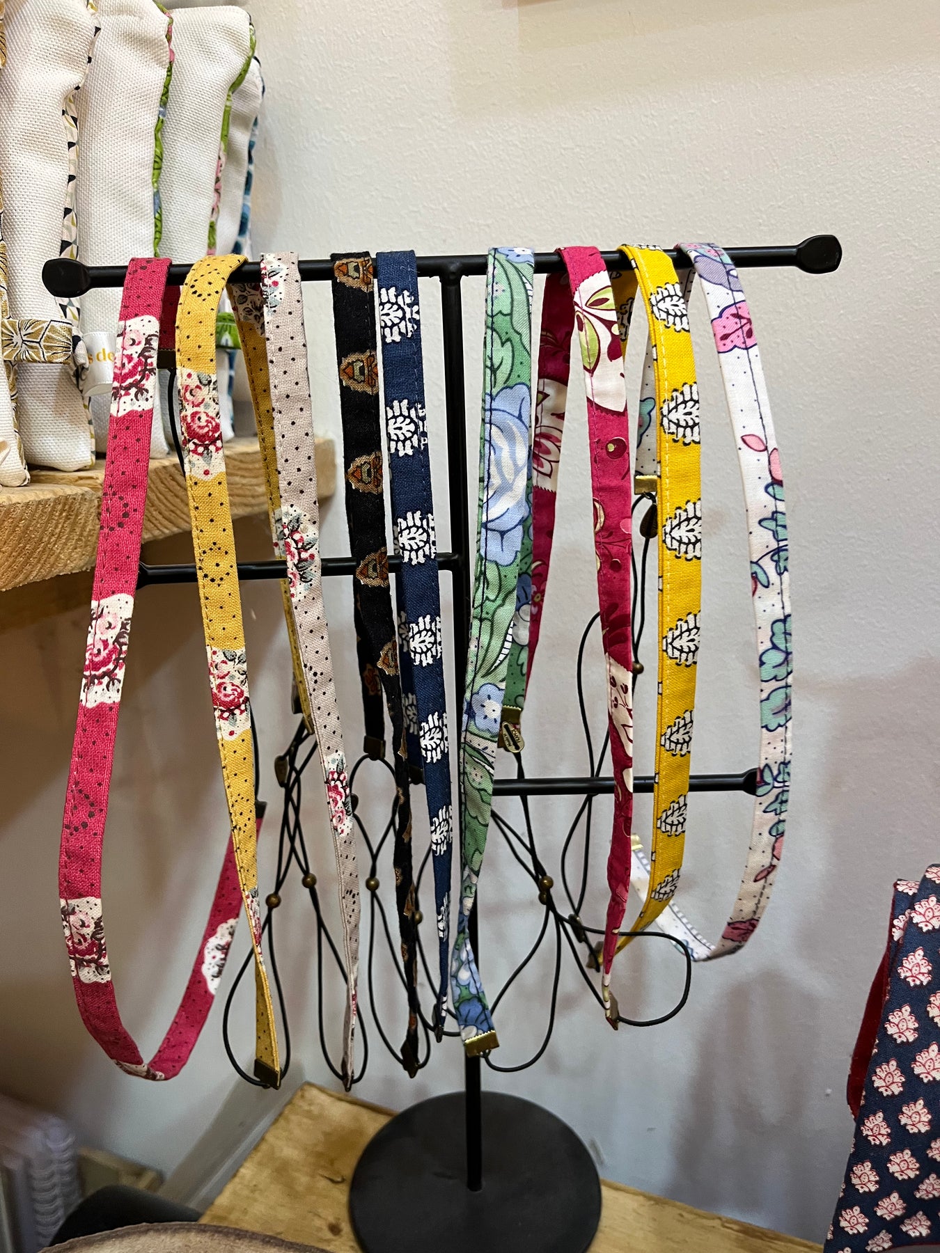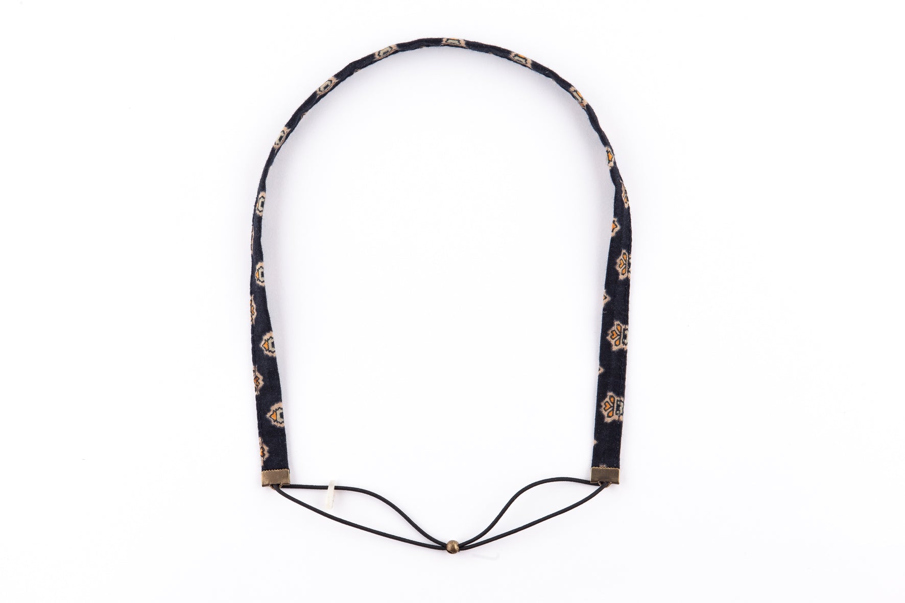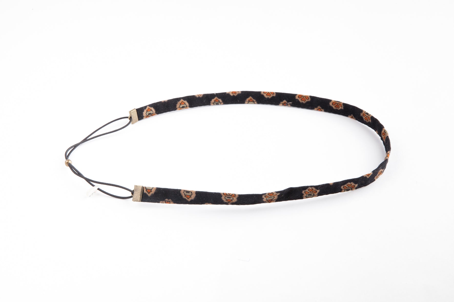 Bandeau cheveux tissu provençal noir marron fin élastiqué.